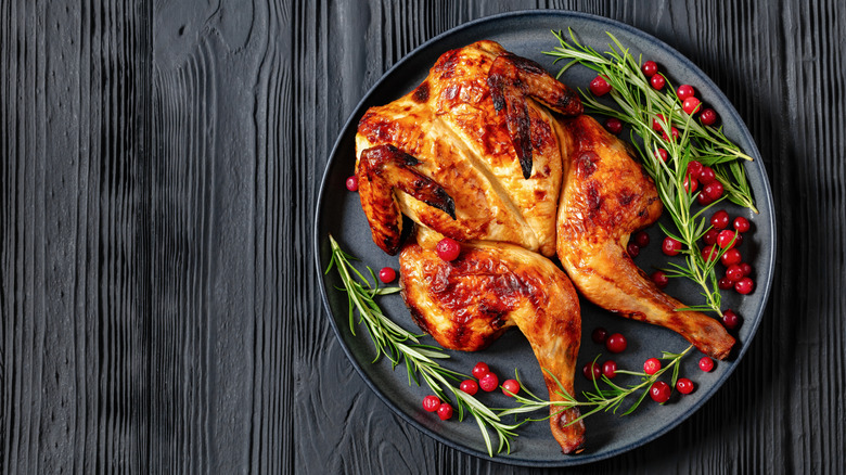 As Guarnaschelli explained in a Food Network post on X, she prepares this dish at home as a go-to meal along with a lot of potatoes. If you're not sure how to handle the spatchcocking part, we have a handy guide for spatchcocking turkey that can be applied to chicken as well. Just follow the three-step process and then roast the bird according to your preference. Before you balk at this, consider that Guarnaschelli considers this a lazy meal, to the point where she and her family eat the bird and potatoes straight off the tray!