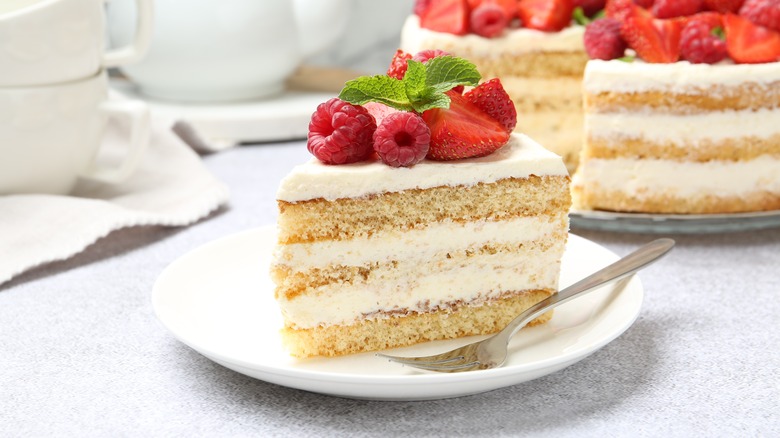Store-bought cake mix may be a convenience item, but that doesn't mean that you need to settle for a mediocre dessert. There are a lot of different ingredients that can upgrade your boxed cake mix by adding more flavor, improving the texture, or making it more moist. Some of these, like maple syrup or brown butter, will add a lot to your mix, but at the expense of changing the flavor. Meanwhile, others, like mashed potatoes or whipped egg whites, work great but require an amount of effort that might defeat the whole point of using boxed cake mixes. But when talking to James Beard Award-nominated cookbook author Jerrelle Guy about flavorful substitutes for water in boxed cake mixes, there was one answer we got that packed a big punch without any of these downsides: a simple cup of whole milk.