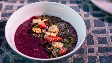 Since you'll only find açaí in the frozen, not fresh, section of your grocery store, you might as well make your own delectable puree using other complementary frozen fruit like raspberries, blueberries, mango, and banana. Not only do you have more control over fruit and sweeteners, but making your own açaí bowl gives you free rein over toppings. Granola and fruit are par for the course, but chia seeds, hemp hearts, and nuts like the Brazilian native cashew. You could also bring out the chocolatey notes of açaí with dark chocolate chunks like our favorite frozen açaí bowl brand, Pitaya Foods.