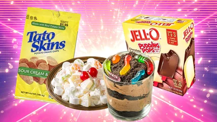 The history of dirt cups is a little convoluted, but it seems that they first popped up in the Midwest in the 1980s, although it's impossible to tell who, exactly, was the culinary trailblazer who first mixed chocolate pudding with gummy worms. They continued in popularity throughout the 90s and 2000s, and then seemed to suddenly die off, for one reason or another. Perhaps it was because we were lying to ourselves about chocolate pudding, Oreos, and gummy worms being a tasty combination — but you can't deny that dirt cups were the pinnacle of '80s food fun.