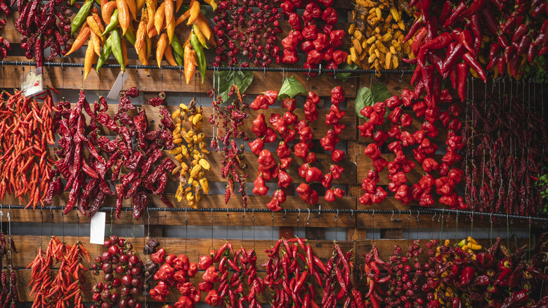 If you're looking for pickles that pack a powerful punch of heat, then you might need to try turning up the temperature on your usual store-bought brand. Hot peppers range in scoville scale from mild to outrageous, so be sure to add with care as a little bit goes a long way. On the dry side, try a shake of crushed red pepper flakes or ground habanero powder. These ground spices will pack a potent amount of heat in any jar of pickles and will be more intense than the fresh variety.