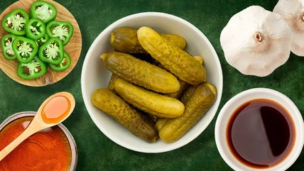 Take inspiration from the signature flavors of Asian cuisine and turn your store-bought pickles into a fusion food of epic proportions with a splash or a dash of soy sauce. Though you'll be adding soy sauce to store-bought pickles, you can still look at recipes for Korean pickled vegetables called Jangajji to get a better understanding of the overall flavor profile. The umami of the soy sauce will amp up your jar of gherkins with an extra punch of saltiness and robust taste.