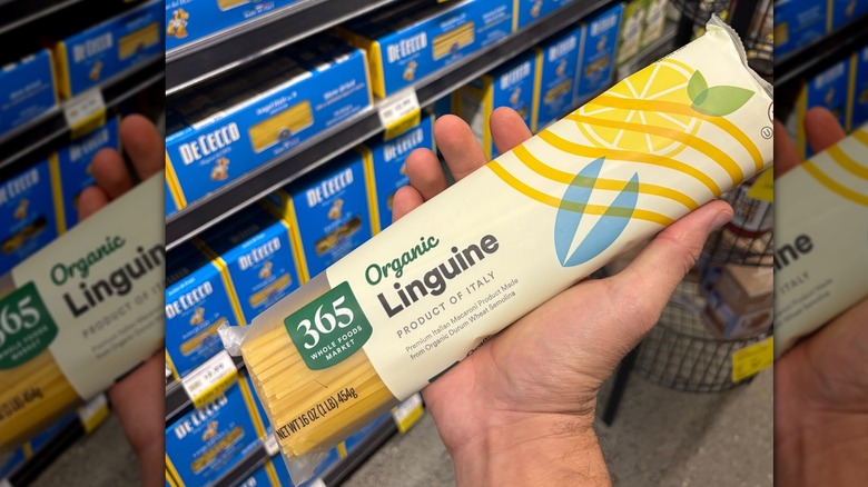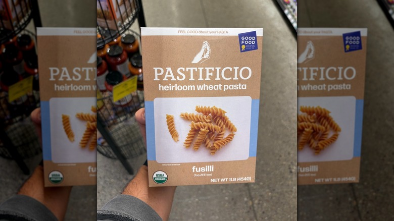 Boulder, Colorado-based Pastificio doesn't have a lot of options compared to other pasta brands you'll find on Whole Foods' shelves. What is available is pricier than most other options — around $10 for a 16-ounce box. (That box, by the way, is plastic-free and biodegradable, per the company.) With all that in mind, if you're in search of an artisan, high-quality pasta made from organic and heirloom wheat, Pastificio is worth the splurge.