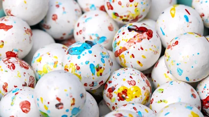 Jawbreakers are made using a kind of candy-making technology that originated in the 19th century called "panning," where a candy core is slowly rolled in a giant basin of sugar syrup until layers are formed and hardened. It can take several days or even weeks to craft the many colorful layers that make up the iconic candy. When the Ferrara Pan candy company got in the jawbreaker game, the company's ability to mass produce soon meant jawbreakers could be found in almost every candy shop. Today, the company still makes name brand jawbreakers, which it calls Jaw Busters, and is the company behind other nostalgic favorites like Red Hots and Lemonheads. It eventually acquired confectionary giants Trolli, Brach's, Nestle, and more.