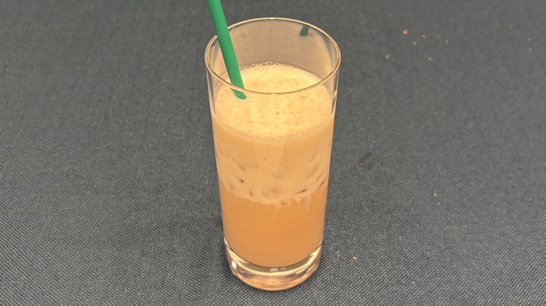 In terms of flavor, I'd say both the banana and protein components of the cold foam were impressive — and this is coming from a famously banana-hating consumer. Seriously, I don't like the fruit at all, and I let out an internal groan when I heard this was making its way to my seat. But try it I did, and I'll have to give it to Starbucks — while you haven't converted me to banana-ism, I wouldn't turn this drink away were it presented to me again. Its banana flavor is subtle and stunningly true to the fruit, while offering a very refreshing tropicality to the foam. Moreover, I think the protein powder only added to the cold foam's flavor. There were no textural issues with this combination. This will be a hearty future addition to any Frappuccino, and one that fans should keep an eye out for.