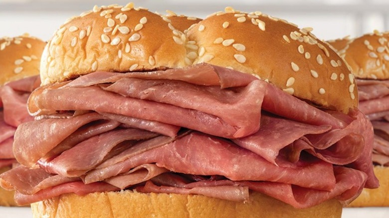 Arby's classic roast beef sandwiches are sliced on order