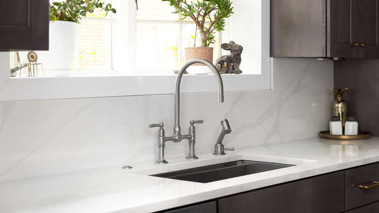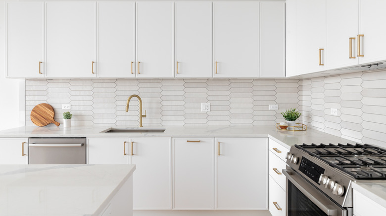 It might not be the most traditional option, but using metal for your backsplash instantly gives your kitchen a modern and edgy feel. Plus, thanks to metal's non-porous character, there's no worry about bacteria lurking in hard-to-clean spots. For example, large stainless-steel sheets are a convenient option that's easy to install. They're sleek and quick to clean if you've opted for a smooth surface, adding extra points in terms of practicality. Most stainless steel these days is smudge-proof, too, eliminating the annoyance of pesky fingerprints all over your backsplash.