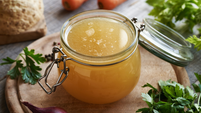 There are plenty of different store-bought foods that are packaged in glass jars. Between pickles, pasta sauces, and more, there are different sizes that can accommodate different portions of liquid leftovers. Make sure you don't throw out these jars once you've finished using the food in them! Instead, wash and set them aside for later use. Lidded glass jars are more ideal for storing soups and broth than most tupperware containers because they provide a more reliable seal. This is also the case if you're thinking of simply covering up your bowl or pot with plastic wrap before placing it in the fridge. Take one of your clean glass jars and repurpose it to prevent spills and to keep your broths organized and properly stored in your refrigerator.