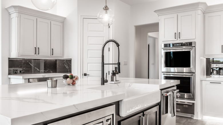 While it never exactly went out of fashion, many film enthusiasts will remember this trend through the works of Nancy Meyers. Her productions had a long reign of influence, including "Something's Gotta Give," aka the 2000s rom-com that launched a thousand kitchen remodels. The films became associated as time capsules for kitchen designs between the '90s and early 2000s. And, on these domestic film sets, there was a striking feature: A monochromatic approach with white or off-white cabinets.