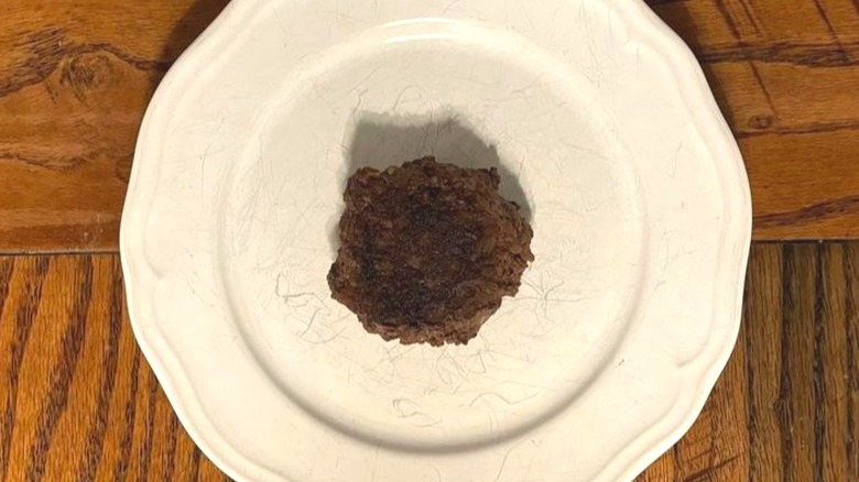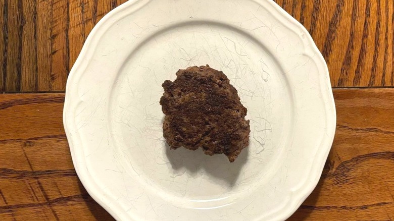 Since I'm not used to cooking with that coarse of ground beef, it was a little difficult forming the patties. They didn't come together as easily as the finer varieties and took some additional time, but I do think I noticed a difference in the flavor and tenderness of the finished burger. Because of that, I would say that Trader Joe's conventional ground beef ranks slightly higher than Aldi's conventional ground beef in terms of tenderness — but it's not necessarily enough to go out of your way for if you aren't in the neighborhood.