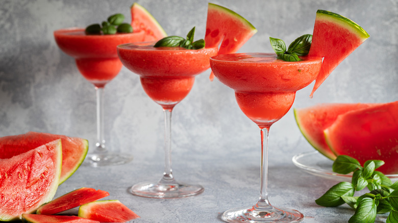 A watermelon sorbet is the ever-elegant, dessert-forward option for using watermelon in your summer cocktails. This option will require a little more time and dedication, but the final product is well worth the effort. While it's not for the faint of heart, if done right, an after-dinner cocktail with watermelon sorbet has the power to transform any backyard barbecue into a luxurious affair.