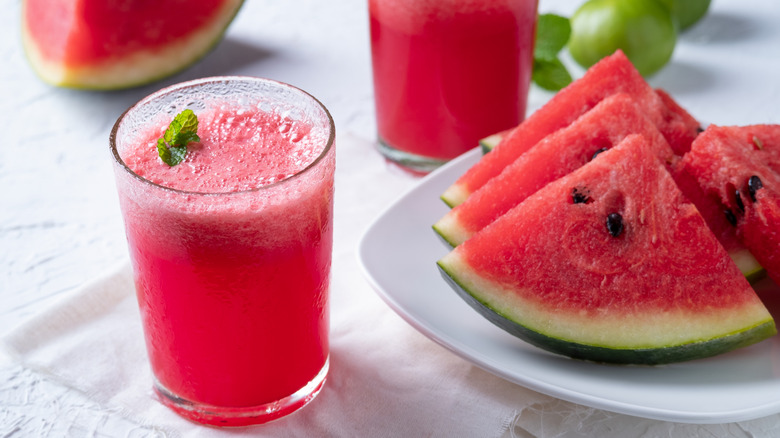 On its own, watermelon juice is a low-calorie drink with 92% water content, making it perfect for hydrating on a hot summer day. Packed with beneficial nutrients and antioxidants, watermelon also contains less sugar than some other fruits. When pressed and strained, the aptly named fruit's juice is a naturally delicious cocktail mixer, and while it takes a little bit of preparation, in watermelon's case, the juice is worth the squeeze.