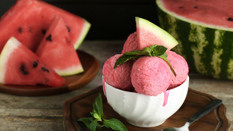 While it only takes two ingredients to make, sorbet's beloved texture comes from a churning process that's similar to ice cream. While granitas lean into shaved ice territory, for those who enjoy a creamy flavor top, opt for a two-ingredient watermelon sherbet recipe instead.