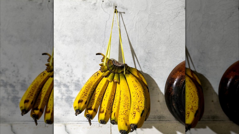 Have you ever seen a banana tree? No, not an actual banana tree plant — in the home, a banana tree (or banana hanger) is a rod or hook that you can hang your store-bought bananas off of to help them ripen properly. Supposedly, this can help slow down the ripening of your bananas by giving them more airflow, preventing the ethylene gases they produce from causing them to brown too quickly.