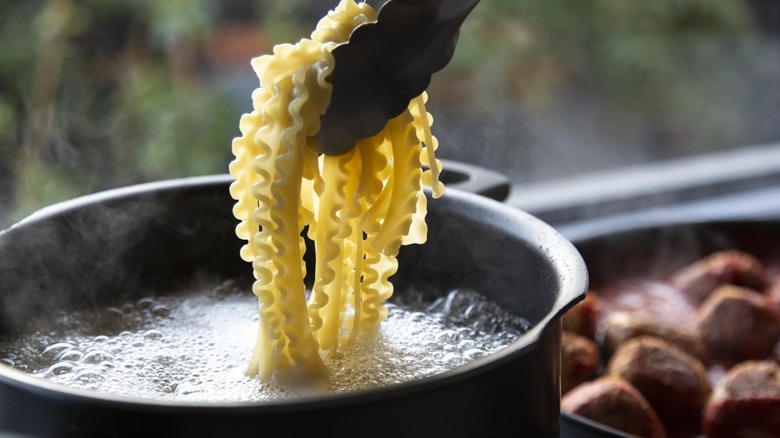 There isn't a complete consensus on how al dente to cook pasta, but there are a few rules of thumb to follow and a few classic pasta-making mistakes to avoid. To start, make sure you're using a big enough pot, with enough water and enough salt added to that water. If you have the wrong pot size or water ratio, your pasta can release more of that starch than you intend, so the setup is important, here. If you are using boxed pasta, the cooking time is there for you — just remember to shave off a minute or two.