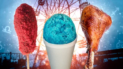 From deep-fried indulgences to sweet, nostalgic treats, fair food isn't just about what we eat, it's about the experience — the smells, textures, and rush of pure happiness with each bite. Whether you're walking down the midway with friends, waiting in line for a ride, or simply soaking in a rich sunset with something warm in your hands, fair foods are often classics for a reason. Eating fair food is a tradition we can look forward to all year, as it allows us to try a variety of delicious foods we may not have otherwise even considered. But then again, these fair snacks become part of our memories and may even evoke different feelings, so we're often left drooling in anticipation, tempted to return to our favorite vendors year after year. But what if your go-to fair food wasn't just a matter of taste? What if the fair foods you're repeatedly drawn toward are a reflection of your cosmic fingerprint?