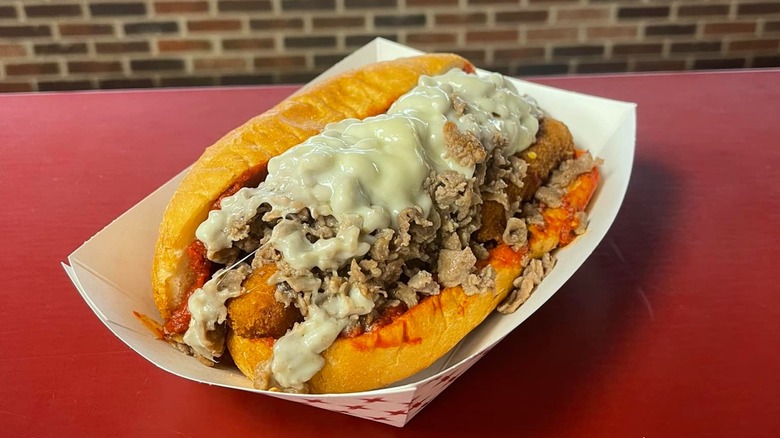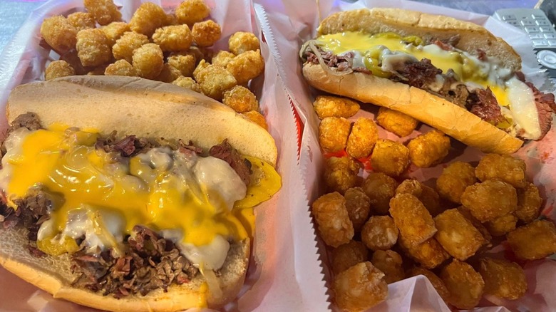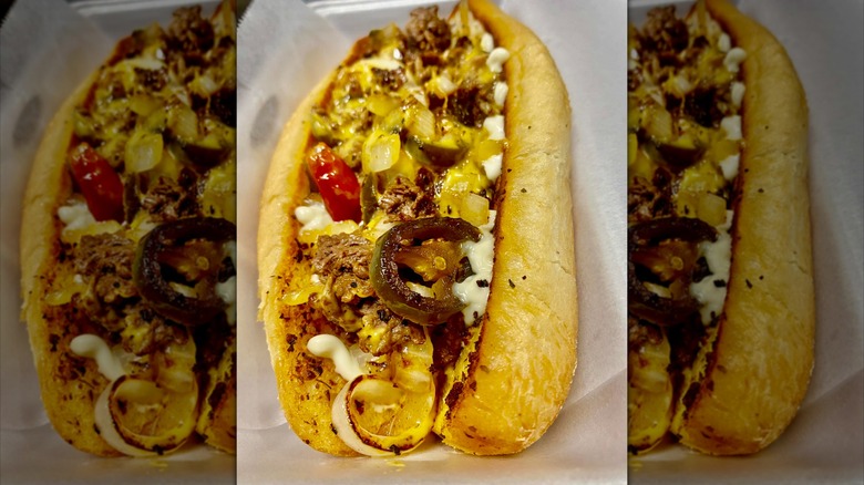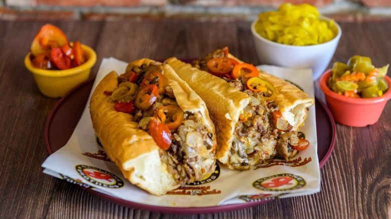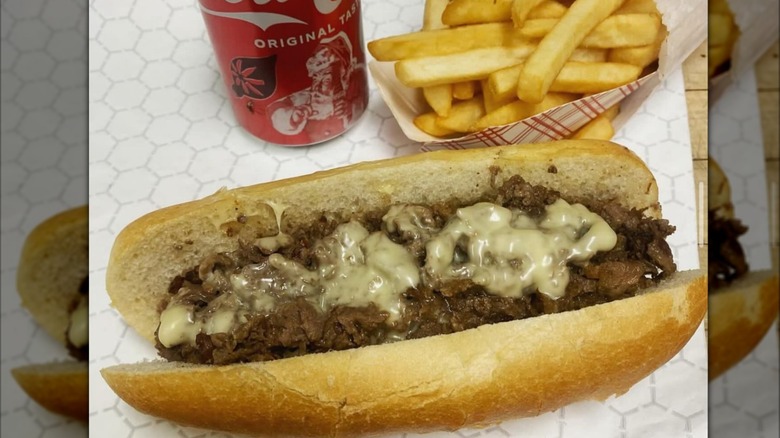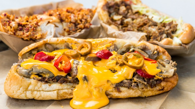 Some places might add non-traditional toppings or get creative with the cheese. Purists might say that's not a real cheesesteak, no matter its name. However, we'll say that if it's marketed as a cheesesteak, if the bones of authenticity are there, and if a ton of people love it, we'll count it as one. So, let's head to other U.S. states to discover the restaurants customers say are creating the best cheesesteaks outside of Philly.