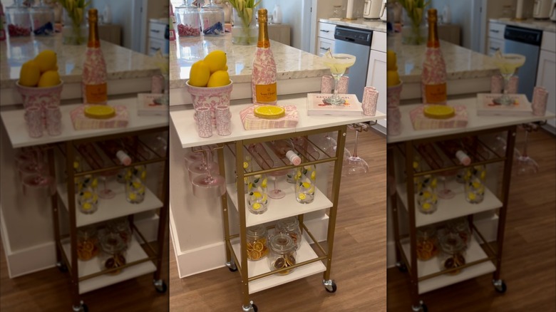 If you have a bare-bones bar cart sitting around in the house, there's a world of options on how to style it. Luckily, you don't necessarily have to spend a lot of money to achieve the desired look. You can work with items that you already have at home, in addition to seeking out specific items at your favorite home goods or secondhand store. A lot of kitchen decor must-have items can be used to decorate your home bar, too.