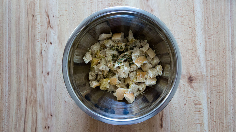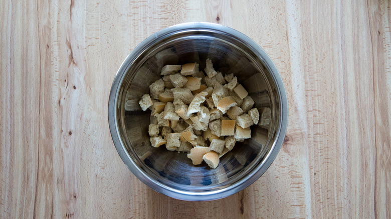 - ½ baguette, cut into ½-inch cubes