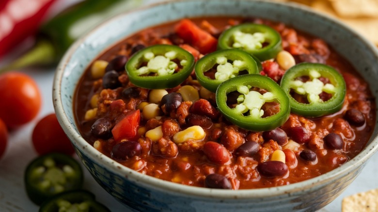 It's easy to pour a little bit of the liquid out of your canned baked beans and swap in your favorite hot sauce. If you're working with beans in water, start by draining and rinsing them first and building up a hot sauce-infused base with seasonings and other ingredients to mix together. Try using a portion of thinly-sliced jalapeños or serrano peppers and minced garlic, adding either the raw ingredients to your beans or sauteing them first. Remember to de-seed and de-vein your peppers before adding them to temper some of the excess heat.