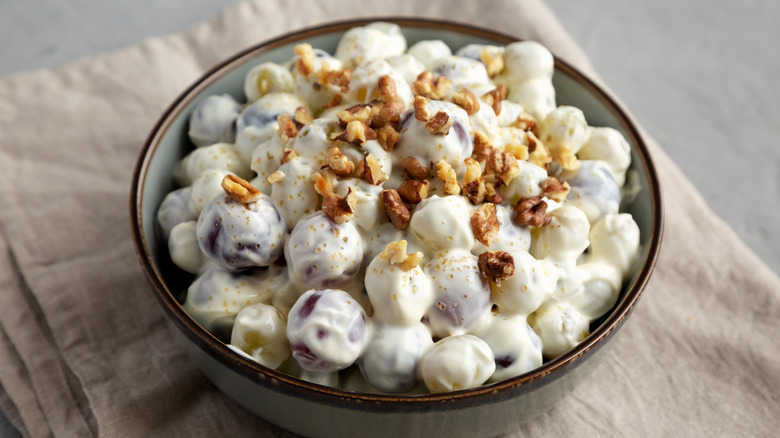 Reddit is a vast and wonderful landscape filled with confusion, questions, and, at times, answers. On that note, when one Redditor snapped a picture of a grape salad at the cold bar of a grocery store in 2021, many were baffled. Some chimed in with an explanation that this dish had been big in the 1950s, noting it was usually made with grapes and a creamy dressing (which was part sour cream, part cream cheese).