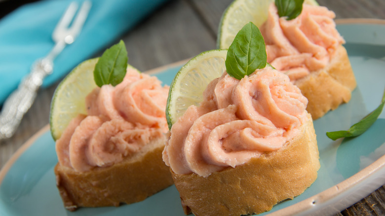 We get it: We promised not to include any gelatin and weirdly-shaped dishes. Of course, while we think salmon mousse deserves a comeback, we also want to give it a little bit of an update. Salmon mousse is a type of salmon paste. On the rare occasion it shows up in 21st century recipes, it's typically made from smoked salmon, whipped cream cheese, egg whites, and may include heavy cream and seasonings like dill. The result is a light, airy spread that's great for crackers or bread (pro tip: Try pumpernickel).