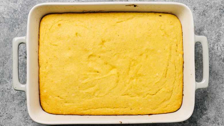Spoonbread is exactly what it sounds like, and you can think of it as a cross between cornbread and a souffle. It's made with cornmeal, but because you're folding in beaten egg whites, you'll end up with a texture that's completely unlike typical cornbread. The batter is scooped into a pie tin or baking dish, and what comes out of the oven isn't sliced. Instead, as the name suggests, it's eaten with a spoon, and it's a brilliant side dish.