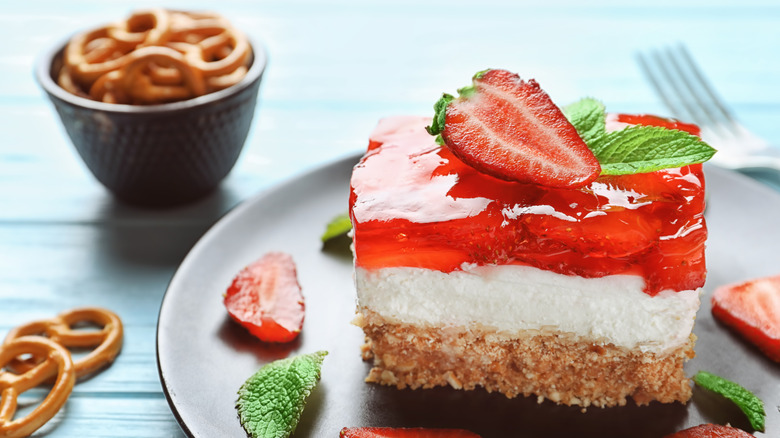 This classic dish has been called both a strawberry pretzel pie and strawberry pretzel salad, but we're going to stick with pie to avoid any association with questionable gelatin salads (and main courses) that have entire Reddit threads dedicated to marveling over their existence. Of course, a strawberry pretzel pie is a marvel in a different way, and it's an easy dessert that really showcases strawberries.