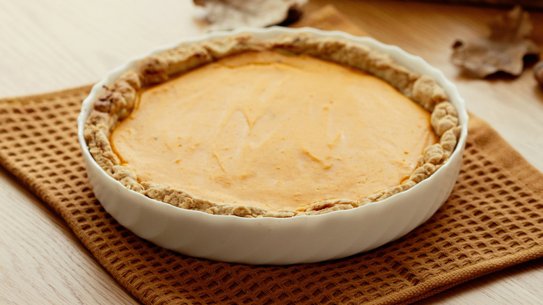 Tang pie uses a no-bake graham cracker crust, which we'd say makes it an ideal summer dessert. The filling contains condensed milk, sour cream, Cool Whip, and Tang all mixed together, before being left to solidify in the fridge. Some Redditors who've made it report that it tastes a bit like a tart Creamsicle or a key lime pie made with oranges, while noting it comes out cold, creamy, and delicious. Others have noted you can take the basic concept and change the profile by using other kinds of powdered drink mixes, remaining a near-perfect dessert for hot summer nights in the process.