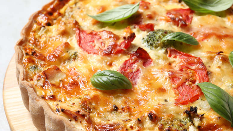 More than that, this dish is super simple — especially if you use a store-bought pie crust. Take your tomatoes, skin and slice them, then transfer the crust into a pie pan. Add a layer of cheese, a layer of tomatoes, and a layer of a cheese-and-mayo mixture, then bake. You can switch up the types of cheese you use, cut (or replace) the mayo with yogurt or sour cream, include fresh herbs, and experiment with different types of tomatoes, too. This is great dish if you're not feeling like anything too heavy. Plus, everyone can make their own personal tomato pies with a spattering of ingredients, this turning one big tomato pie into pies tailor-made for your family.