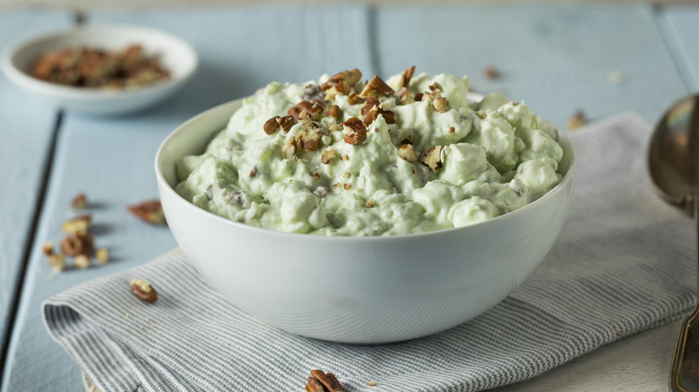 Of course, whether or not Watergate salad is a nostalgic favorite or a bizarre crime against the natural order of things depends on your point of view. But it's undeniable that it's earned a place among the weirdly tasty foods of our past. Interestingly, while no one seems to know who first mixed pistachio pudding with whipped topping, pineapple, marshmallows, and nuts, we do know it was named after the Watergate scandal (though no one really knows why). Regardless, a fun, fruity, nutty, and creamy dessert — with a history lesson wrapped up inside — is pretty neat, as far as we're concerned.