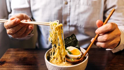 Once seated, don't forget your manners. When handed an oshibori (a wet towel), remember that it is to clean your hands only –– do not make the mistake of wiping your face. Never eat directly from a shared bowl. Sticking chopsticks upright in rice is considered deeply offensive (the chopsticks look like incense sticks, which are traditionally used to commemorate the dead). Oh! And in the case of ramen, slurping is good!