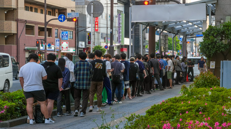 Don't ever cut the line in a queue. In Japan, queuing is a way of life. It is considered rude to cut or skip a line and impolite to stand too close to the person in front of you. Don't sit waiting for wait staff –– in many restaurants, the waiters don't come directly to you but wait for you to ring a bell or call them over with the words "sumimasen" or raise your hand, and someone should come to you. Don't sit waiting to pay your bill –– many restaurants will bring the bill to your table, but you must take it to a counter to pay it. Sometimes, you won't receive a bill and are expected to visit the pay counter with your table number. Some restaurants require you to pay at the window before you eat your food, and often, in ramen and gyudon restaurants, you pre-buy meal tickets from a vending machine and then hand the tickets to the staff who will bring your meal.