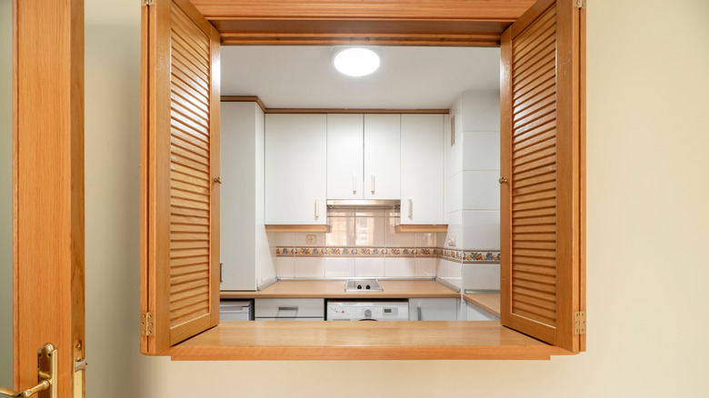It certainly isn't as simple as moving a houseplant away from a window or even slapping on a fresh coat of paint, but building a serving hatch (otherwise known as a pass-through) in your kitchen is well worth the effort. A serving hatch is an open area in a wall, usually with a sill or small countertop, that opens out into a dining area or living room. It's designed to pass food and drinks easily from the kitchen to family members or guests in the next room over, but it also serves as a way to allow light from the adjoining room into the kitchen. A large window-like opening also makes the kitchen feel much bigger than it actually is, which in turn leads to a brighter, airier space.
