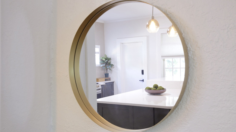 You don't often find mirrors in the kitchen, but when the task at hand is to increase brightness, a mirror can be the quickest, simplest, and cheapest way to go about infusing a space with light. The trick is to opt for one large mirror as opposed to multiple smaller ones. Pick out a large round, square, or rectangular mirror — whichever suits your room the best. Most kitchens have a lot of square or rectangular shapes (think cabinets, tables, or an island), so you might want to choose a round mirror to add contrast and not let your kitchen feel too boxy.
