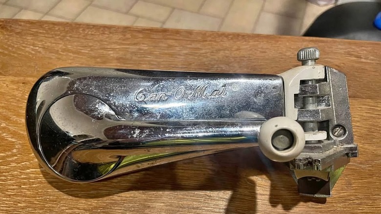 According to Reddit users, you'd be surprised how many old kitchens had a metal crank bolted to the wall, usually next to kitchen windows, above the sink, or under kitchen cabinets. If you've ever spotted one and wondered what it was, it's a wall-mounted can opener, and for decades, it was just ... there. No batteries to worry about, no drawer clutter, no rummaging through utensils mid-recipe. Just a sturdy, always-there tool that got the job done. As some users fondly noted, these openers were incredibly handy. But they came with a warning too: the cutting wheel, if neglected, could collect gunk over time.