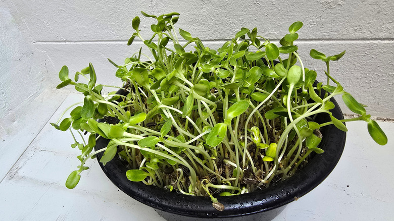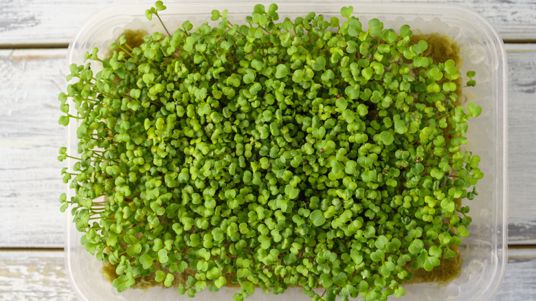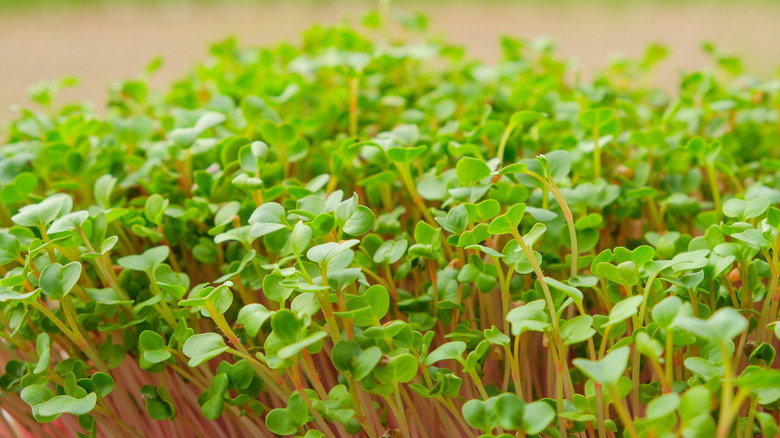 Next up are broccoli microgreens. Don't let their tiny size fool you — they are ideal for first-time growers, and great if you're feeding young children. With a slightly earthy sweetness, broccoli microgreens are far milder than mature broccoli, and lack the spicy kick of radish microgreens, making them far more likely to actually be consumed. They easily blend into smoothies without bitterness, and can be tossed onto sandwiches, salads, or eggs for extra crunch, flavor, and nutrition.