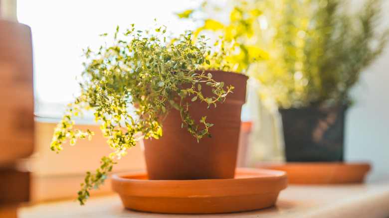 You can grow thyme from seed, but to be honest, it's much easier to start with a small plant or cutting. Use a well-draining potting mix, give it plenty of sun (6+ hours a day), and water only when the soil is dry — thyme doesn't like wet feet. Let it dry out between waterings and trim regularly to keep it bushy.