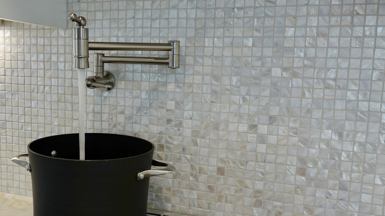 However, plumbing expert Kelly Russum offers some important considerations that you should keep in mind. While he acknowledges that pot fillers can be an asset if you regularly need to fill large pots with water, he also points out that installing one could prove to be more trouble than it's worth. Beyond accumulating dust, Russum notes that adding one more water line to your kitchen means you're increasing the chances that you'll deal with a water leak at some point. "And since they're wall-mounted, repairs often mean cutting into drywall," he explains. Russum also recommends considering how involved (and expensive) the installation will be. "Installation can be tough, too, if the wall isn't already prepped with a water line (retrofitting one can be expensive)," he shares.
