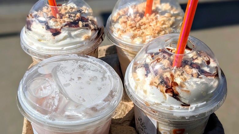 Ultimately, I was impressed — albeit not blown away — by Dunkin's new summertime drinks. Sabrina's Strawberry Daydream Refresher was by far my favorite of the group, with the Butter Pecan Frozen Coffee following close behind. Both of these drinks could likely fare well on the permanent menu, or go down in fast food history as some of Dunkin's best short-term menu items, alongside the seasonal Dunkalatte and Cookie Butter Cold Brew.