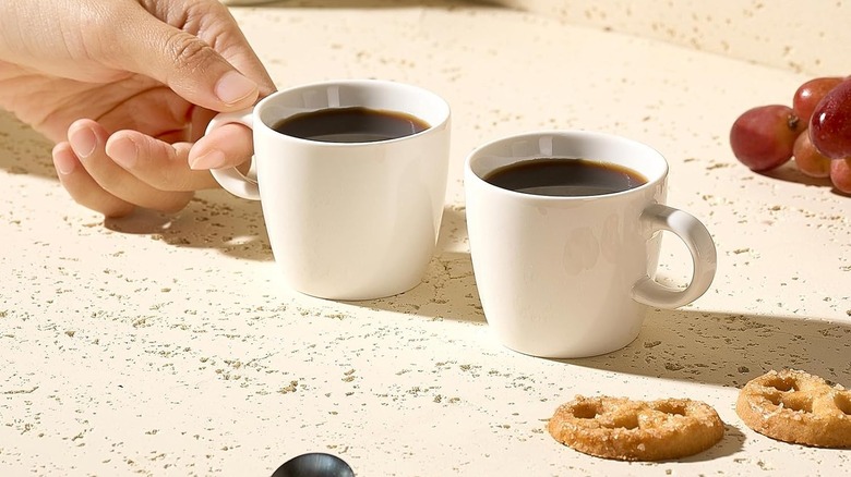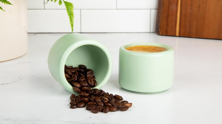 Another aspect that sets them apart is the larger 5-ounce size, making them ideal for those who prefer double espressos or other types of coffee. Functionality is high here, too. The cups are made from pro-grade porcelain and will happily go in the dishwasher, microwave, or oven. That also extends to them being easy to clean and able to retain their heat, per reviewers. If you want understated mugs that will fit seamlessly in an elegant kitchen, these could well be the espresso mugs for you.