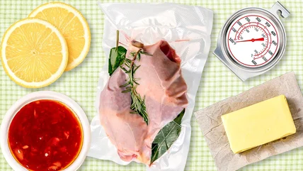 Adding in a few choice aromatics can really take your chicken thighs to the next level. They'll infuse into the meat, and the long cooking time of the sous vide will give them enough time to flavor everything. Use your sous vide to make your favorite Thai-inspired chicken thighs, use some Middle Eastern or South Asian spices, or give your recipe an Italian twist. It's all allowed, and frankly, for juicy and great-tasting chicken, it's encouraged.