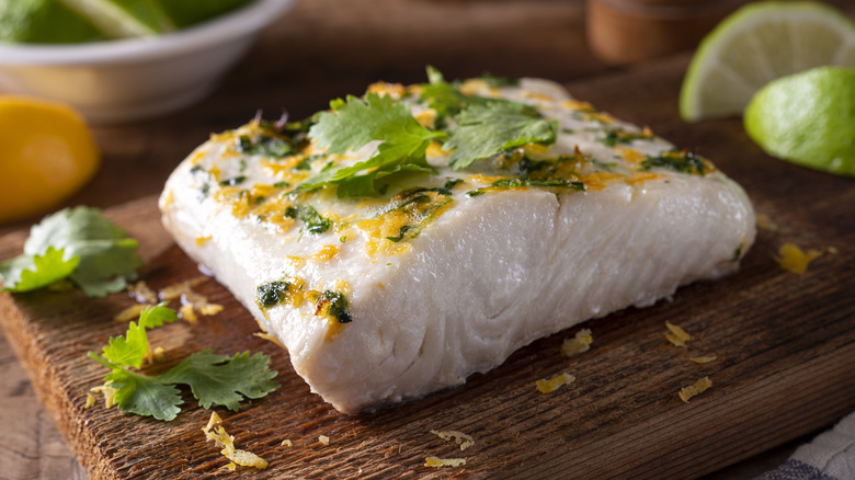 But since halibut is so versatile, you can also use it in a fresher presentation of fish salad, prioritizing an oil or vinegar-based dressing and really packing in the fresh veggies. Regardless of which kind of salad you're trying to make, you can use halibut that's been baked, grilled, or even poached.