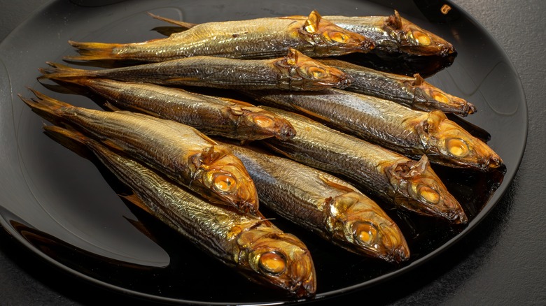 Sprats aren't the easiest type of fish to find in every part of the United States, but they're worth seeking out when you want to expand your seafood salad horizons. If you like sardines, you're likely to enjoy sprats as well. They have a similar salty, pungent flavor to sardines, but some claim that they're a bit lighter or less intense than sardines are. Generally, you'll find these tiny fish tinned or canned, which makes them shelf-stable and easy to keep on hand whenever you get a craving for fish salad. Although you can easily break them up into tiny pieces to create a salad that's similar to what you'd expect from a classic tuna salad, they're also small enough to eat whole on top of a green or veggie-based salad. Plus, since they're so flavorful, you don't need to use a lot of them to harness their salty, savory intensity.