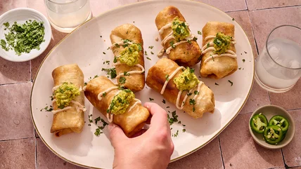 Level up your spread by making crispy chicken chimichangas filled with pulled chili-lime chicken, cilantro-lime rice, and creamy, spicy chipotle ranch sauce.