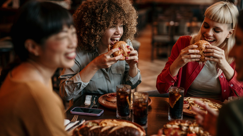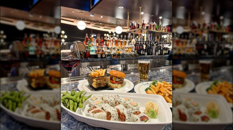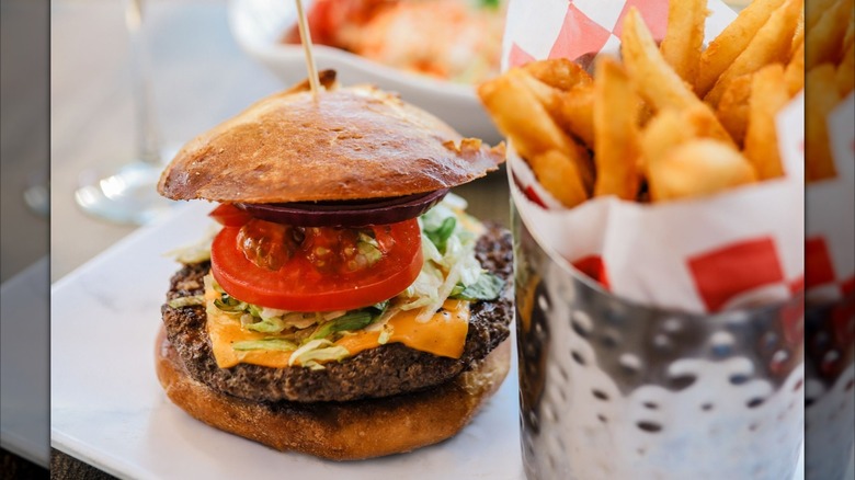 As we've seen with a few other places on our list, Eureka! also does a split happy hour that runs from 3 to 6 p.m. and again from 9 p.m. to close. Those are the times you can order the American burger for a completely reasonable $13, and it's a great example of a simple burger with standard toppings — including lettuce, tomato, red onion, pickles, cheese, and sauce — that's just done really well. Add fries, mac and cheese balls, fried pickles, or nachos of the so-called "hoppy hour" menu, and enjoy wine and cocktail specials, along with beer specials that change regularly.