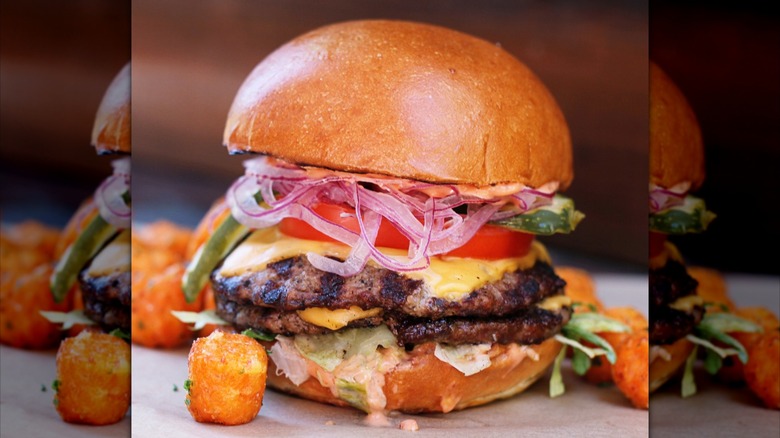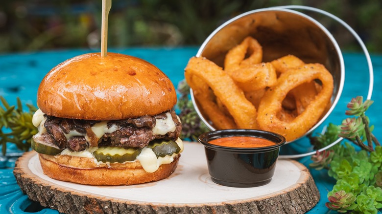 Sometimes, a burger doesn't have to be complicated and fancy to be delicious, and 18Bin's signature Bin Burger proves it. Served with onions, cheese, pickles, and sriracha aioli with fries, it's a whole meal that will set you back just $12. Although some reviews cite something of a chaotic atmosphere and long wait times, plenty of others say that it's a fun spot with great, affordable burgers and a stellar, casual vibe.