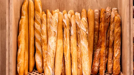 We ranked the baguettes on taste and texture, and our favorite store-bought baguette aced both categories. According to our ranking, Iggy's Whole Wheat Sourdough Baguette is so good, you can eat it all on its own. Whole wheat and sourdough may not be common foundations for a traditional French baguette, but they work perfectly to enhance the flavor and texture of Iggy's baguette. The hearty, nutty whole wheat and the tangy aftertaste from the sourdough are complementary flavors that bring a unique complexity to this baguette, and we're here for it.