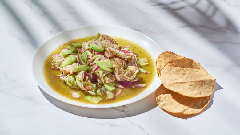 Venegas explains that in Mexico, "we just keep it simple, and just cure the fish with lime juice." There are some places in Baja, the chef reveals, that will also use Clamato or V8 as the liquid to cure the fish. But no matter how the ceviche is made, it's always a summer dish. "When it's hot in summer, you just want something refreshing which is not a salad," she says.