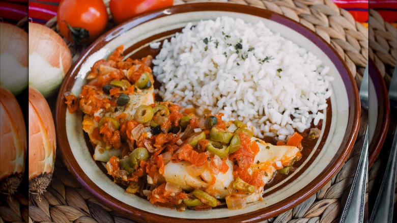 One of Reyna Venegas' favorite dishes and a dish she often teaches in her cooking classes, Pescado a la Veracruzana, is a staple that she explains is steeped in Mexican history, because it mixes traditional Mexican ingredients with items the Spanish brought over. Those ingredients are the easy-to-find green olives and capers. The chef says it's a "really delicious" meal that's typically made with the rock fish that can be caught up and down Mexico's coast (though any white fish will work).